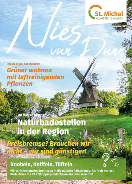 In der aktuelle Ausgabe unseres Kundenmagazins "Nies vun Dunn" entdecken Sie nicht nur spannende Neuigkeiten aus unserer Region, sondern finden auch wertvolle Tipps rund um das Thema Energie. Erfahren Sie, wie Sie Ihren Energieverbrauch effizienter gestalten können, entdecken Sie innovative Technologien und nachhaltige Lösungen, die Ihnen dabei helfen, einen Beitrag zum Umweltschutz zu leisten.
